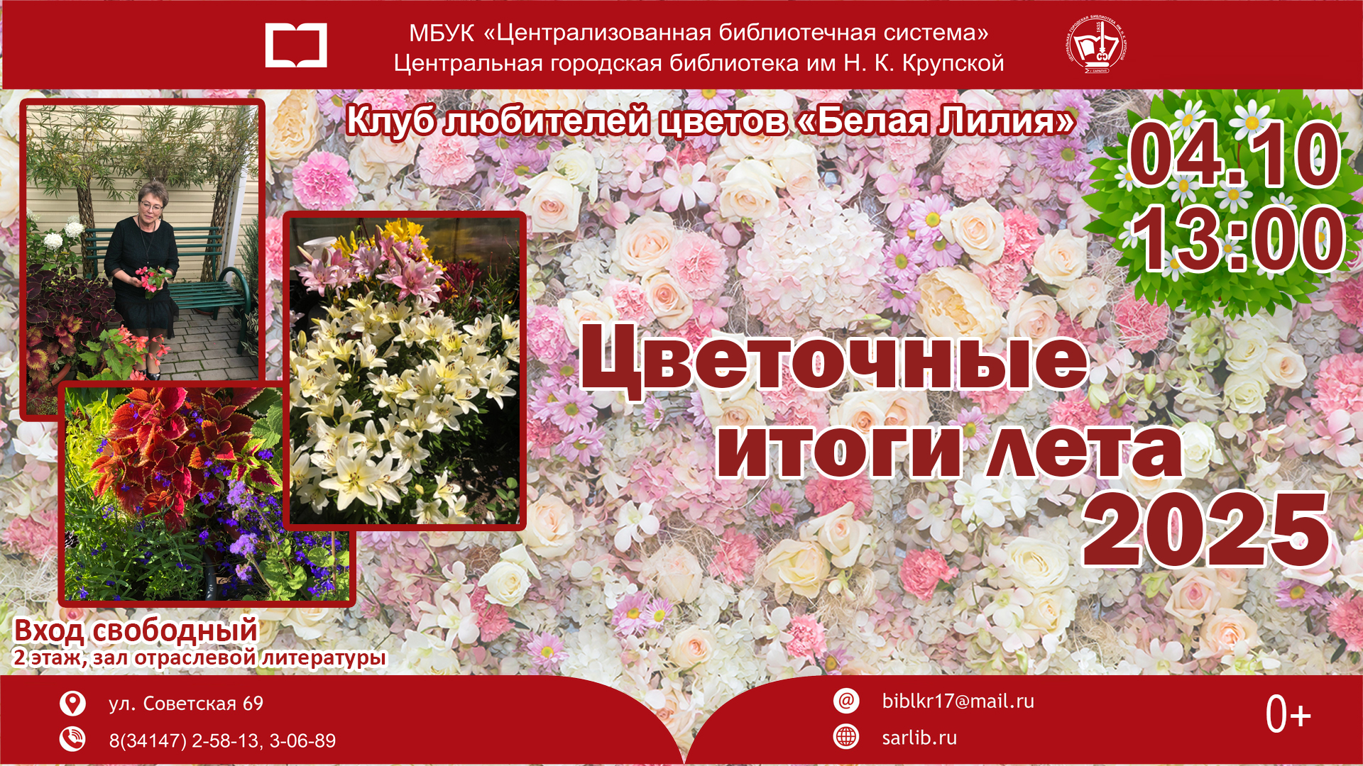 Осень – период покоя для цветов, но не для цветоводов. Если вы хотите узнать много нового и интересного о цветоводстве и огородничестве, послушать советы бывалых цветоводов, приглашаем вас на осеннюю встречу в наш клуб «Белая лилия». Вы услышите: