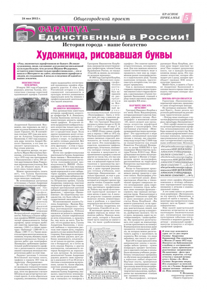 Пеганова, Т. Художница, рисовавшая буквы / Т. Пеганова // Красное Прикамье. – 2012. – 24 мая. – С.5.