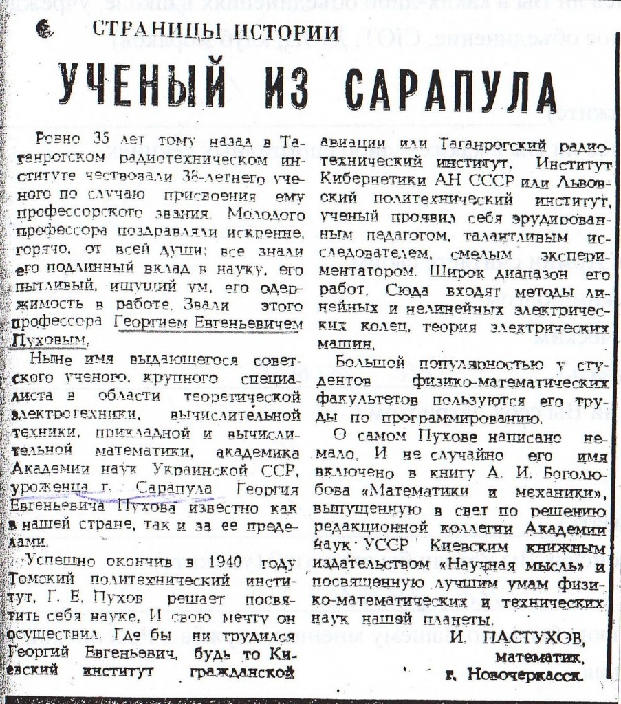 Пастухов, И. Ученый из Сарапула / И. Пастухов // Красное Прикамье. – 1989. – 1 апр. – С.3.
