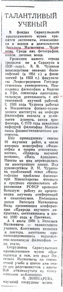 Энгельс Матвеевич Чудинов родился 13 октября 1930 года в Сарапуле.